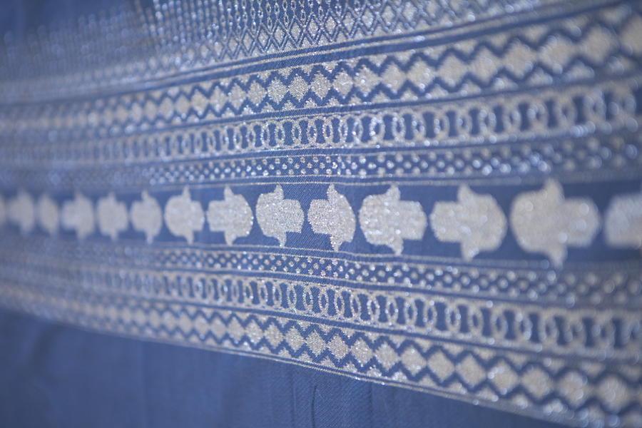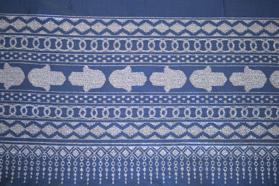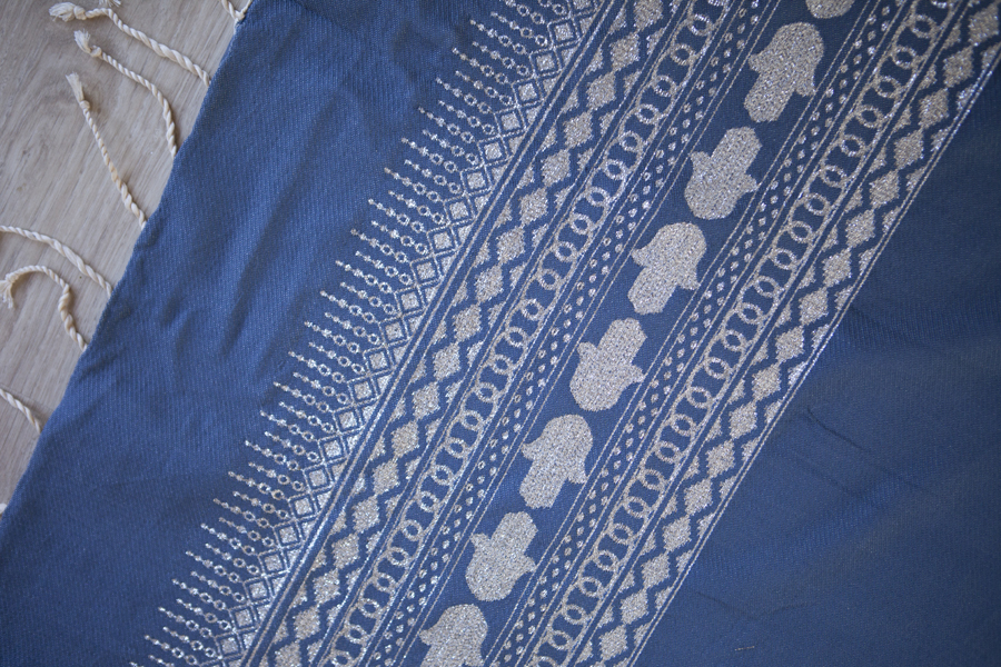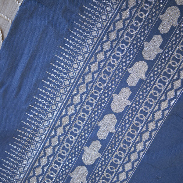 HOUSE OF GALILEE Handmade Aegean Blue Throw with Silver Hand of Fatima and Silver Trim