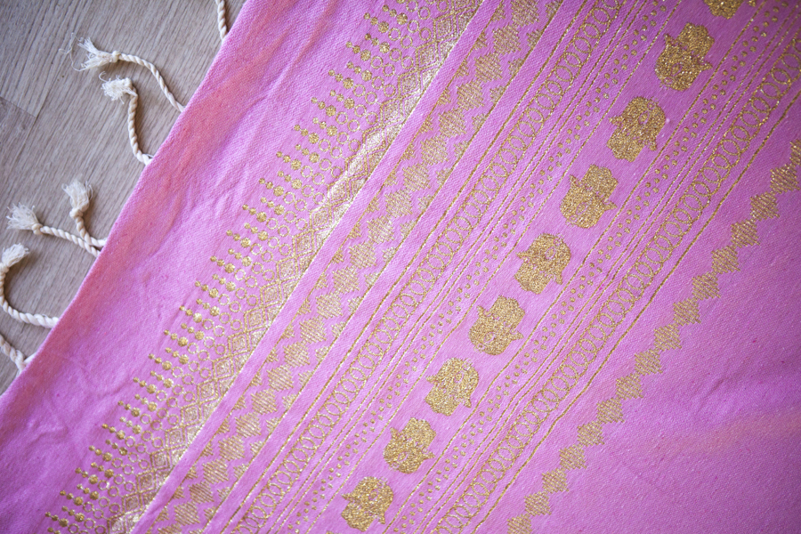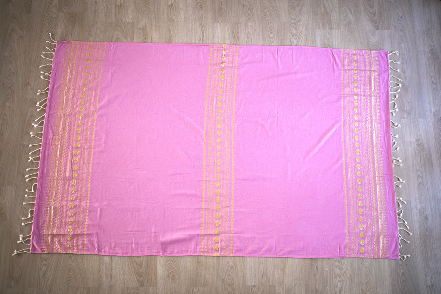 HOUSE OF GALILEE Handmade Candy Pink Throw with Gold Hand of Fatima and Gold Trim