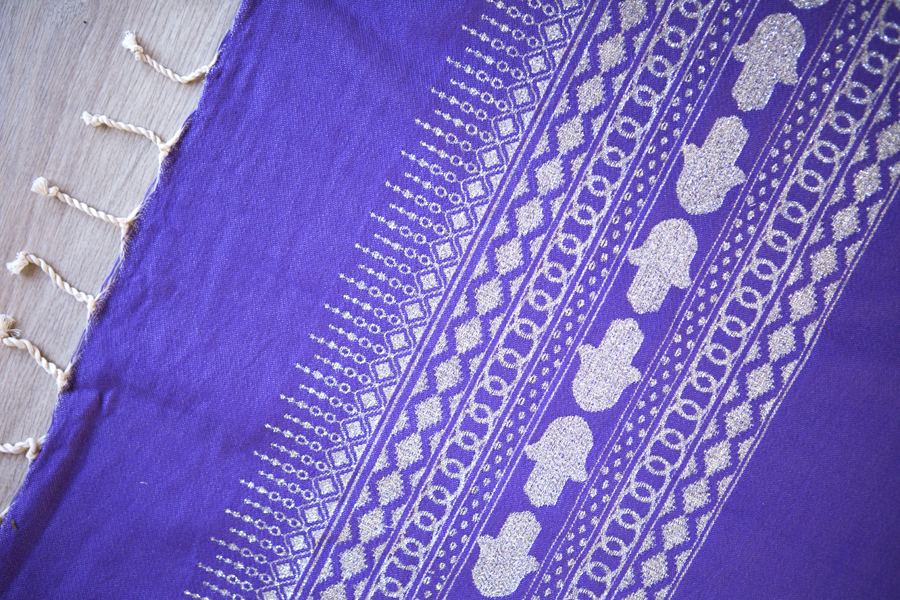 HOUSE OF GALILEE Handmade Purple Throw with Silver Hand of Fatima and Silver Trim