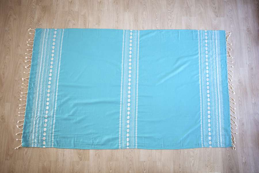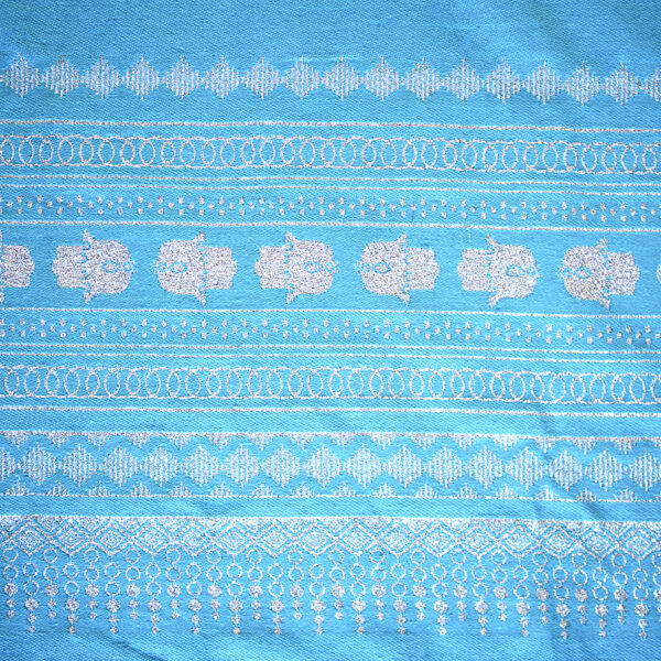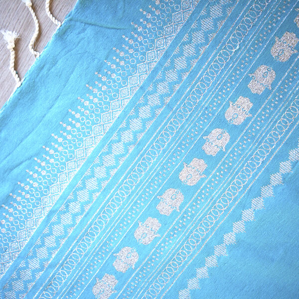 HOUSE OF GALILEE Handmade Turquoise Throw with Silver Hand of Fatima and Silver Trim