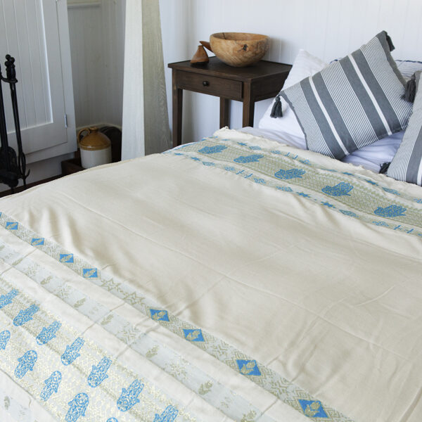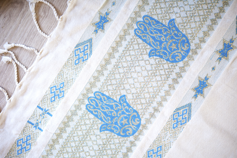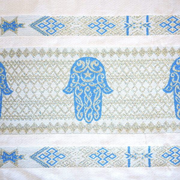 The main design and the uniqueness of our lovely throws is due to the Hand of Fatima design, also known as Khamsa, the Hand of Miriam or Hamesh which originated from the ancient civilisations in the Mediterranean region. The Hand of Fatima is an ancient talisman that symbolises feminine power and is used as a defence against negative energy as it deflects the gaze of the evil eye away from its owner. The Hand of Fatima is believed to channel the forces of good and it also promotes healing and fosters miracles