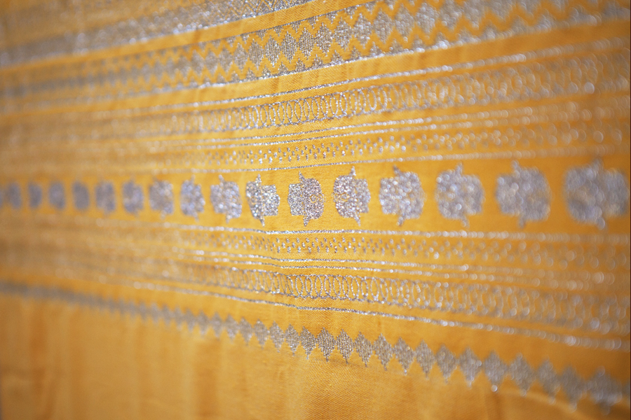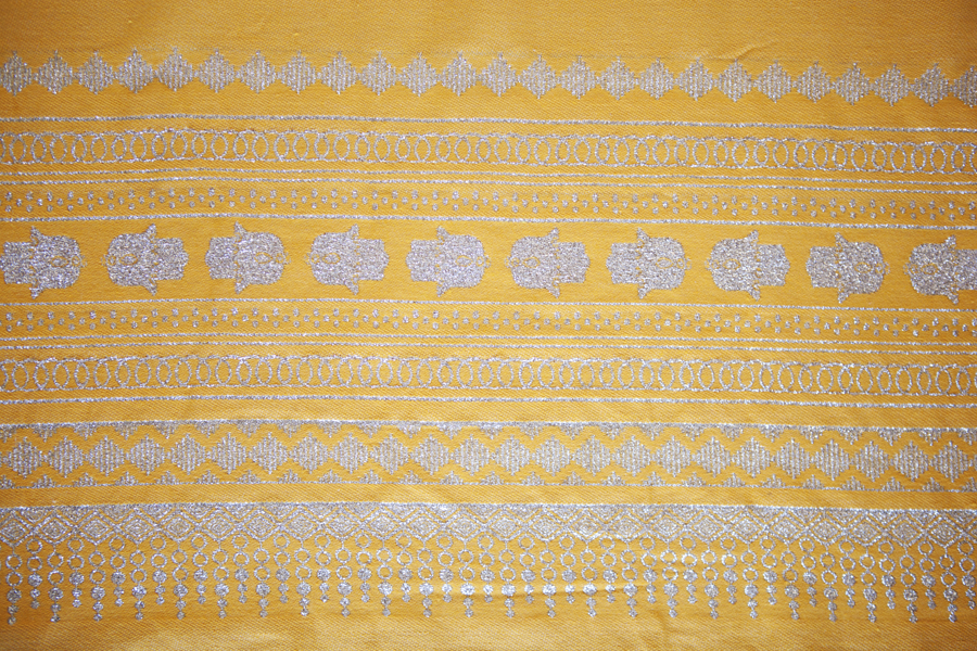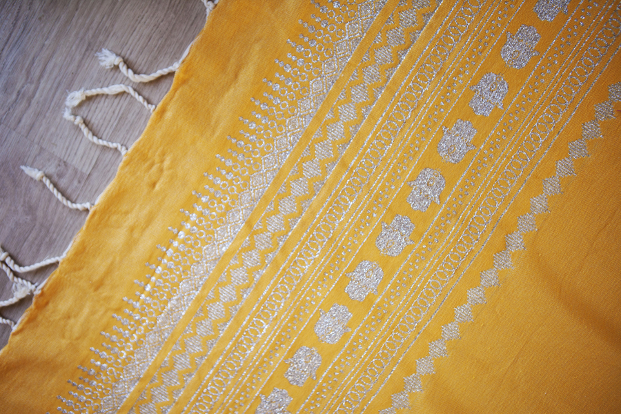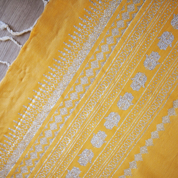 HOUSE OF GALILEE Handmade Yellow Throw with Silver Hand of Fatima and Silver Trim